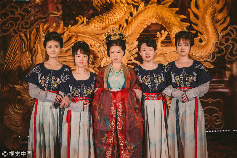 新郎趙佳瑞是嘉興人,今年28歲,比黃聰小兩歲,是一位攝影師。因?yàn)樵?jīng)給黃聰拍攝漢服,他知道她有很多漢服,就經(jīng)常向她借漢服給客人拍攝,經(jīng)常接觸就相戀了?,F(xiàn)在夫妻倆在當(dāng)?shù)亻_了專門拍攝古風(fēng)的攝影工作室。工作室就三個(gè)人,除了小夫妻,還有黃聰?shù)拈|蜜楊曉晨做化妝師。在婚禮上,這些小姐妹都穿上漢服,像一個(gè)個(gè)漂亮的宮女。