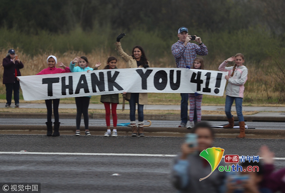 當(dāng)?shù)貢r(shí)間2018年12月6日,美國(guó)德州,美國(guó)前總統(tǒng)老布什將落葬德州農(nóng)機(jī)大學(xué)布什總統(tǒng)圖書館和博物館后面的布什家族墓地,與他半年前去世的妻子芭芭拉以及早夭的女兒蘿賓葬在一起。當(dāng)天,一輛葬禮專列將載著老布什的棺槨及其親朋,從休斯敦郊區(qū)開往老布什的最后安葬之地、德州農(nóng)機(jī)大學(xué)。這列火車的第六節(jié)車廂側(cè)面是透明的,人們可以在鐵軌旁看到老布什蓋著國(guó)旗的靈樞。圖片作者:Joe Raedle/視覺中國(guó)