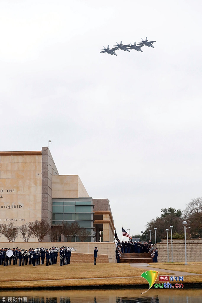 老布什靈柩下葬德州家族墓地 21架F18戰(zhàn)機編隊悼念