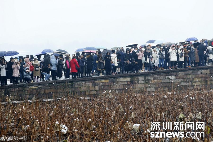 深圳新聞網(wǎng)訊 2018年12月8日,杭州,當(dāng)日市區(qū)普降大雪,市民和游客扎堆涌入西湖景區(qū),拍攝最美雪景照片以及為自己留影。每次杭州一下雪,斷橋便成為眾多游客欣賞雪景、拍攝雪景的地方,大家都想看看“斷橋殘雪”。游客們扎堆涌入斷橋后,人山人海,讓現(xiàn)場堪比春運(yùn)場景。因?yàn)槿颂?,雪積不起來,斷橋看不到殘雪。