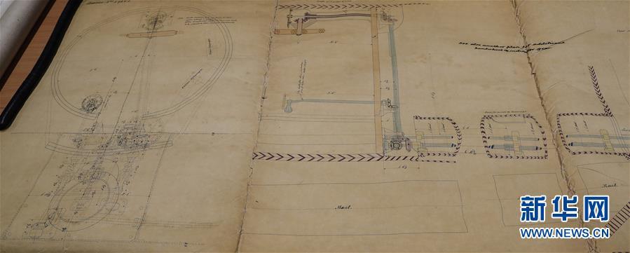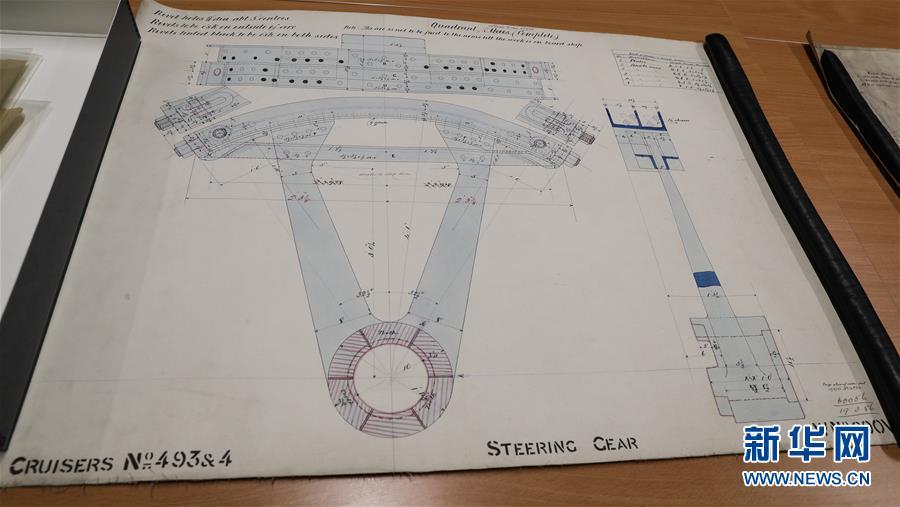 這是11月2日,在英國紐卡斯?fàn)柵臄z的橫跨在泰恩河上的紅白兩色的鋼鐵旋轉(zhuǎn)橋泰恩橋。當(dāng)年,致遠(yuǎn)艦就是從這里駛向大海,開啟東方征程。 新華社記者日前在紐卡斯?fàn)柼┒鳌枡n案館查找北洋海軍史料時發(fā)現(xiàn)一套七張、檔案名為“中國巡洋艦舵機(jī)設(shè)計(jì)圖”的原始圖紙。塵封百年,甲午海戰(zhàn)中抗擊日艦后沉沒的清北洋海軍致遠(yuǎn)艦部分原廠設(shè)計(jì)圖紙?jiān)谄浣ㄔ斓亍~卡斯?fàn)柺械囊患覚n案館首次被發(fā)現(xiàn),為打撈那段悲壯的歷史提供了重要參考。 新華社記者 韓巖 攝