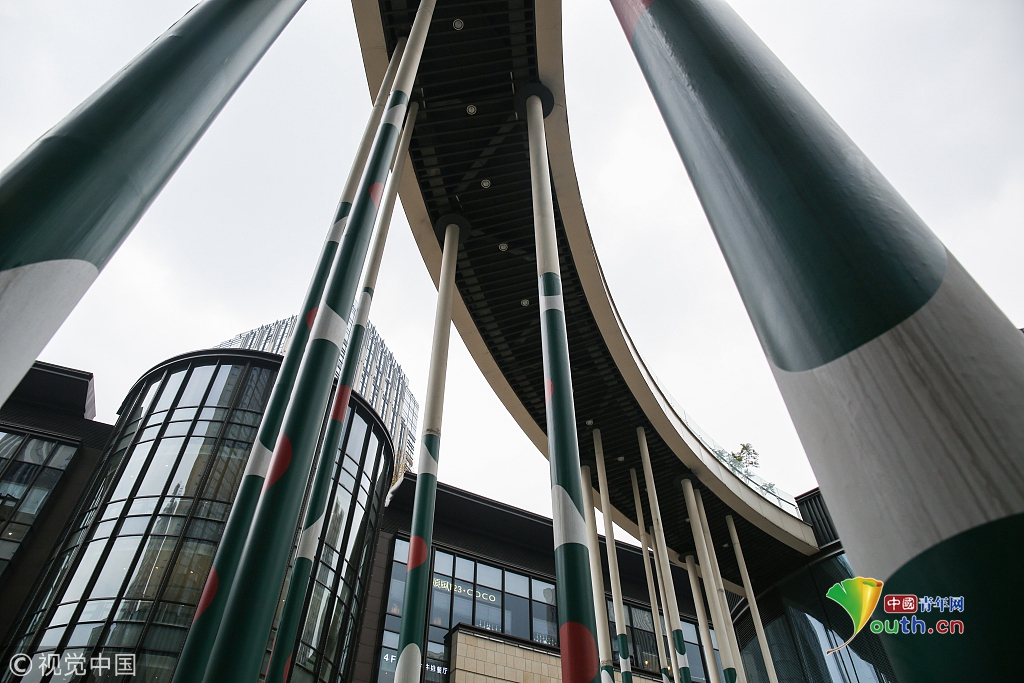 中國青年網(wǎng)2018年12月13日訊   2018年12月11日,重慶,重慶一座造型奇特的人行天橋吸引著人們的注意,柱子高約10米,沒有橋墩,呈半弧形,連接著兩棟獨立建筑,下方靠19根纖細的立柱支撐著。