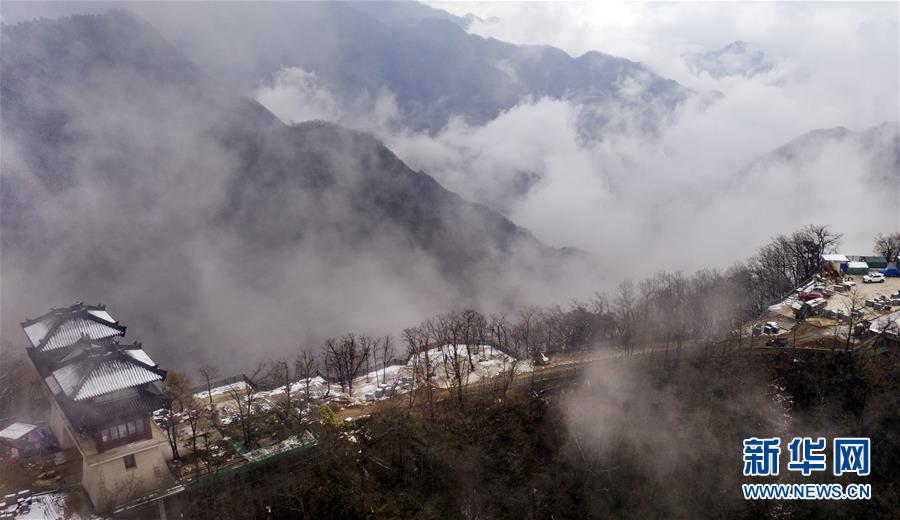 11月17日無(wú)人機(jī)拍攝的華山蒼龍嶺。 當(dāng)日凌晨的一場(chǎng)大雪將西岳華山變成白雪皚皚的世界,白雪與蒼翠的華山奇松、靈動(dòng)的云海交相輝映,如夢(mèng)如幻;滿山遍野玉樹(shù)瓊花,樹(shù)枝上通體的霧凇晶瑩剔透,繪就冬日畫(huà)境,美不勝收,游人如置身人間仙境。 新華社記者陶明攝