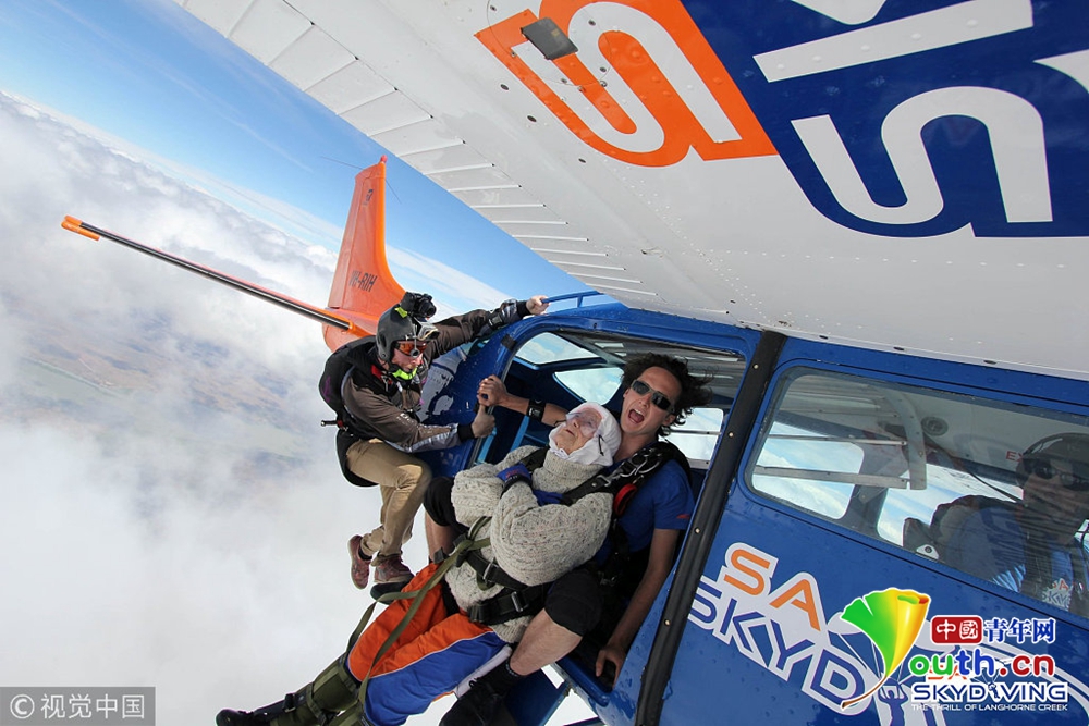 12月14日消息,澳大利亞一名102歲高齡的老奶奶日前刷新世界紀(jì)錄,她跟著教練從1萬(wàn)4000英尺(約4300公尺)的高空一躍而下,成為全球最年長(zhǎng)的跳傘玩家。