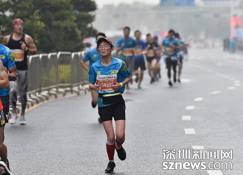 2018年12月16日,深圳國際馬拉松位于后海的折返點(diǎn),一名選手正在向終點(diǎn)沖刺。