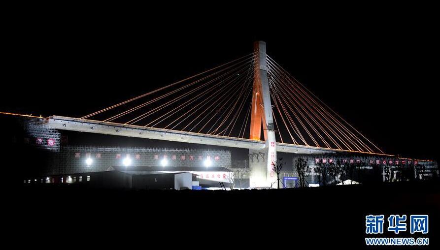 當(dāng)日凌晨,自帶弧度和大陡坡、形似一輪新月和登云天梯的1.65萬噸斜拉橋在河南鄭州近郊的夜幕中轉(zhuǎn)體成功,標(biāo)志著在建的鄭萬鐵路順利跨越徐蘭高鐵,同時也填補(bǔ)了國內(nèi)小曲線、大縱坡、大偏心轉(zhuǎn)體斜拉橋施工的空白。