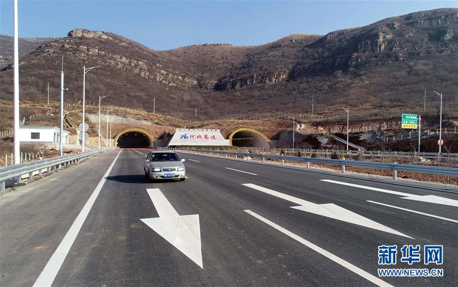 12月16日,一輛汽車(chē)行駛在京秦高速公路二期工程河北玉田境內(nèi)的鳳凰頂隧道路段(無(wú)人機(jī)拍攝)。