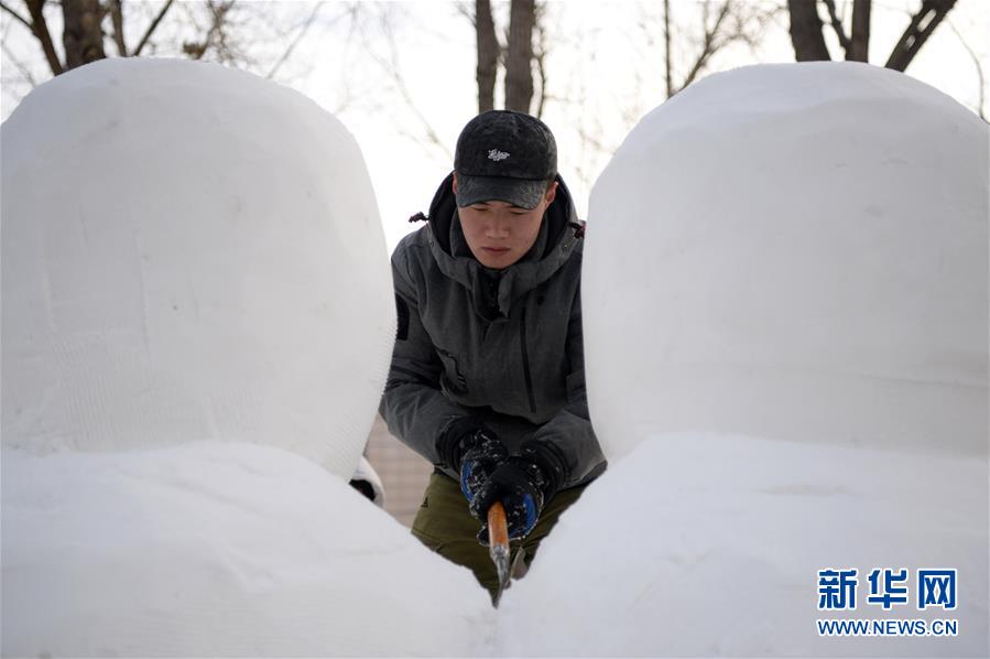 國(guó)內(nèi)最大的雪雕盛會(huì)太陽(yáng)島雪博會(huì)正在緊鑼密鼓建設(shè)中,雪雕師正在精雕細(xì)刻打磨中。