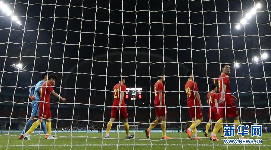 圖為2018年3月22日,中國隊(duì)球員在廣西南寧體育中心舉行的2018中國杯國際足球錦標(biāo)賽中以0比6不敵威爾士隊(duì)后離場的資料照片。 新華社記者曹燦攝