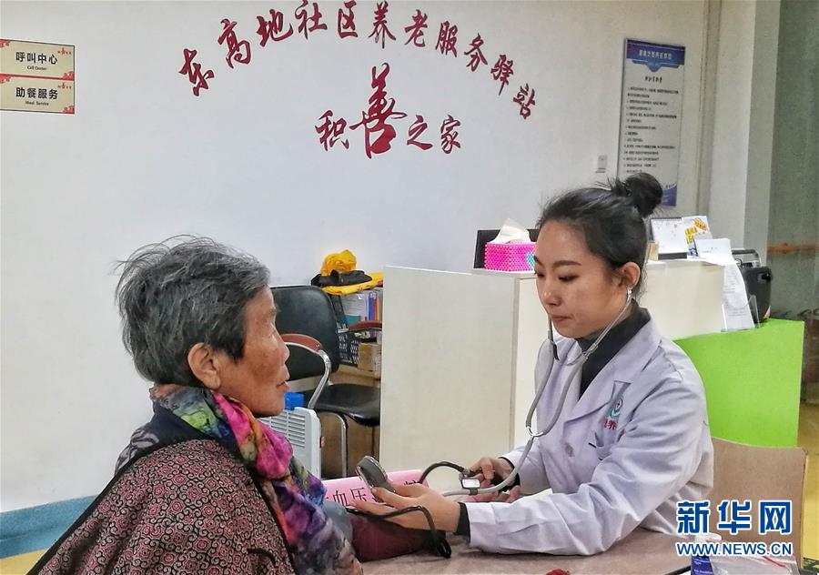 12月18日,豐臺(tái)區(qū)東高地街道養(yǎng)老服務(wù)驛站聘請(qǐng)的醫(yī)務(wù)人員為社區(qū)老人進(jìn)行免費(fèi)檢查。  新華社記者 李欣 攝