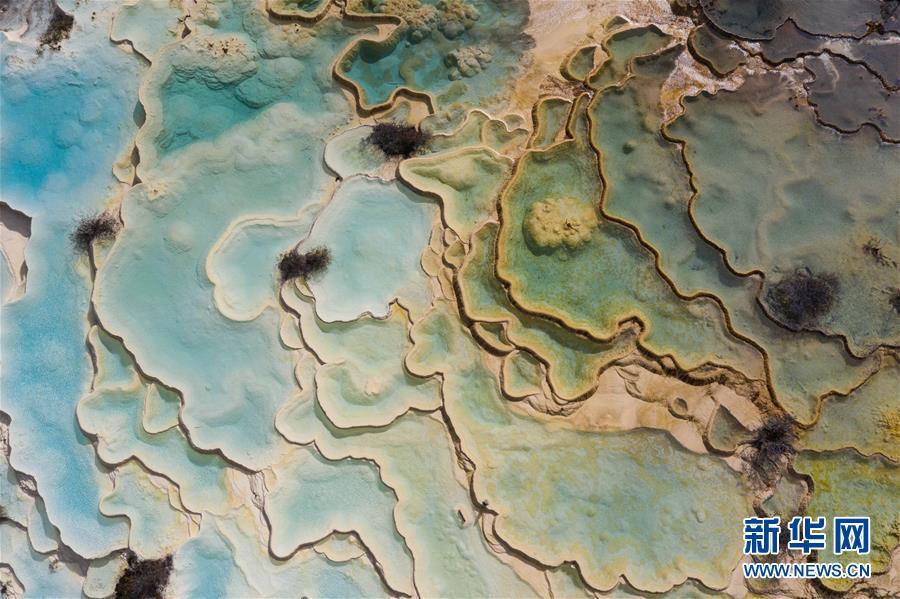 這是2018年10月19日航拍的黃龍溝五彩池一角。 大地之色,俯仰之間;壯美山河,是我的祖國。2018年,新華社記者操縱無人機(jī)“飛閱”華夏大地,在最美的時(shí)節(jié),定格下她的色彩斑斕。 新華社記者 江宏景 攝