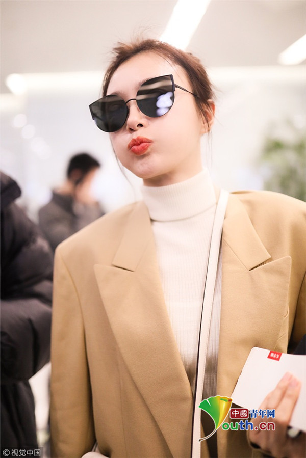 2018年12月11日,上海,秦嵐現(xiàn)身機場。她穿淺西裝配高領(lǐng)毛衣溫暖又時尚,梳丸子頭清新減齡,機場獲粉絲送告白信,嬌羞嘟嘴賣萌少女范十足。