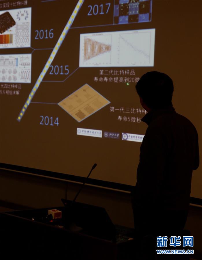 2017年5月3日,中國(guó)科學(xué)技術(shù)大學(xué)潘建偉院士在上海宣布,我國(guó)科研團(tuán)隊(duì)成功構(gòu)建的光量子計(jì)算機(jī),首次演示了超越早期經(jīng)典計(jì)算機(jī)的量子計(jì)算能力。這是潘建偉院士在介紹“超導(dǎo)量子計(jì)算機(jī)路線圖”。 新華社記者 金立旺攝