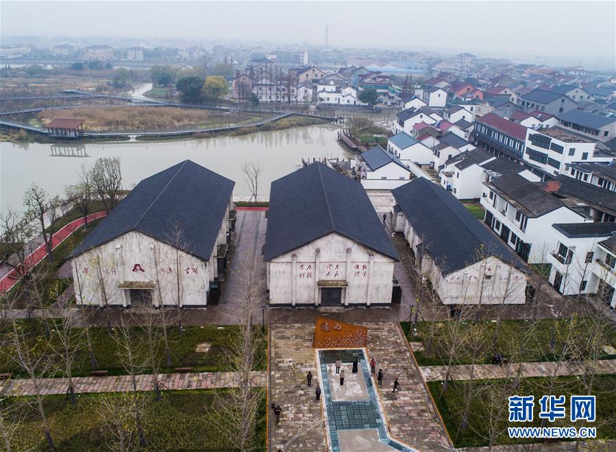 12月20日,空中俯瞰舊糧倉改建而成的鄉(xiāng)村文體中心(無人機拍攝)。 新華社記者 徐昱 攝