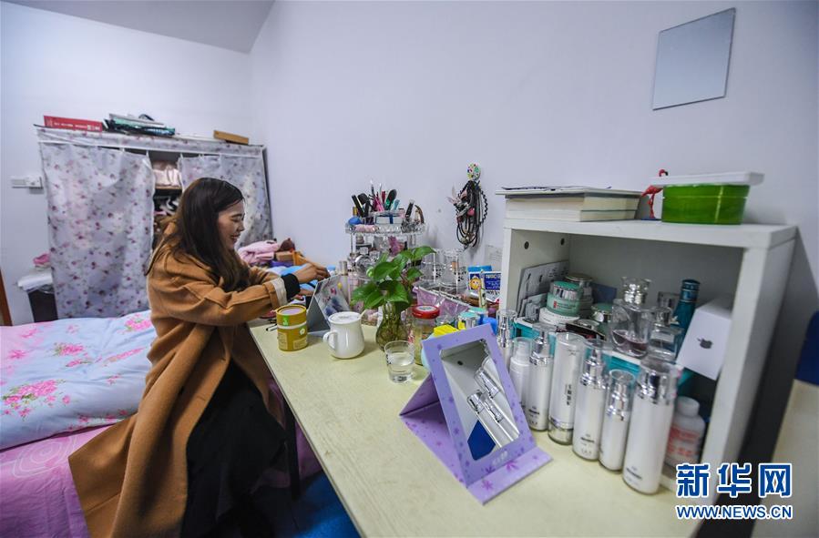 12月20日,一名童裝產(chǎn)業(yè)園的工人在位于園區(qū)內(nèi)的宿舍內(nèi)整理個(gè)人用品。該童裝產(chǎn)業(yè)園共有員工標(biāo)準(zhǔn)宿舍2000多間,從2017年開(kāi)始陸續(xù)投入使用。 新華社記者 徐昱攝