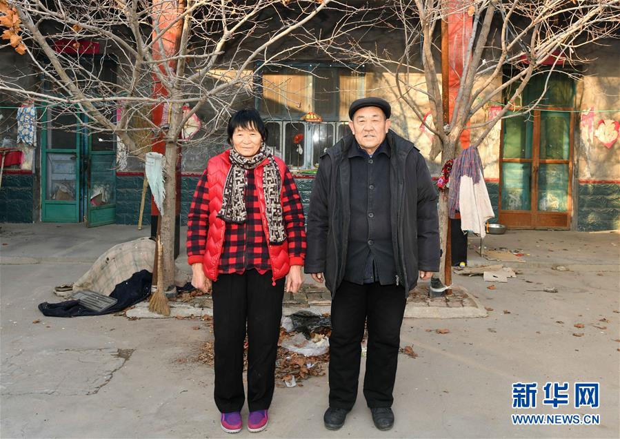 12月20日,青城鎮(zhèn)菜園村村民韓貽崗(右)和愛人在舊居院內(nèi)拍照紀(jì)念。  新華社記者 朱崢攝
