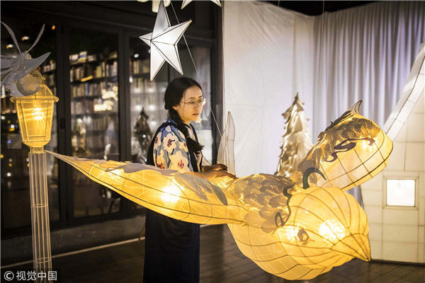 2018年5月6日,廣州,在天河區(qū)一家大商場辦個展時,用紙片做成的北極熊、大松樹、火烈鳥、紙房子在光線的配合下美輪美奐,吸引了很多顧客駐足?!皫缀趺總€人一看到,都會走進那個夢幻的場景里,和這些紙雕一起合影?!眻D片攝于2018年5月6日。