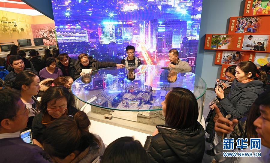 12月21日,觀眾在新華社主辦的“大美中國(guó)”影像長(zhǎng)廊參觀。