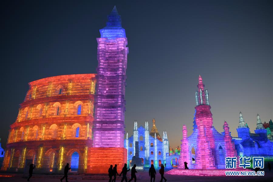 當日,第二十屆哈爾濱冰雪大世界開園迎客,向來自全世界的游客展現“流光溢彩”的冰雪奇觀。第二十屆哈爾濱冰雪大世界總占地面積60萬平方米,用冰量11萬立方米,用雪量12萬立方米。上百個景觀群、30余處互動娛樂項目及數百場精彩活動,構成了一場冰雪盛宴。 新華社記者王建威攝
