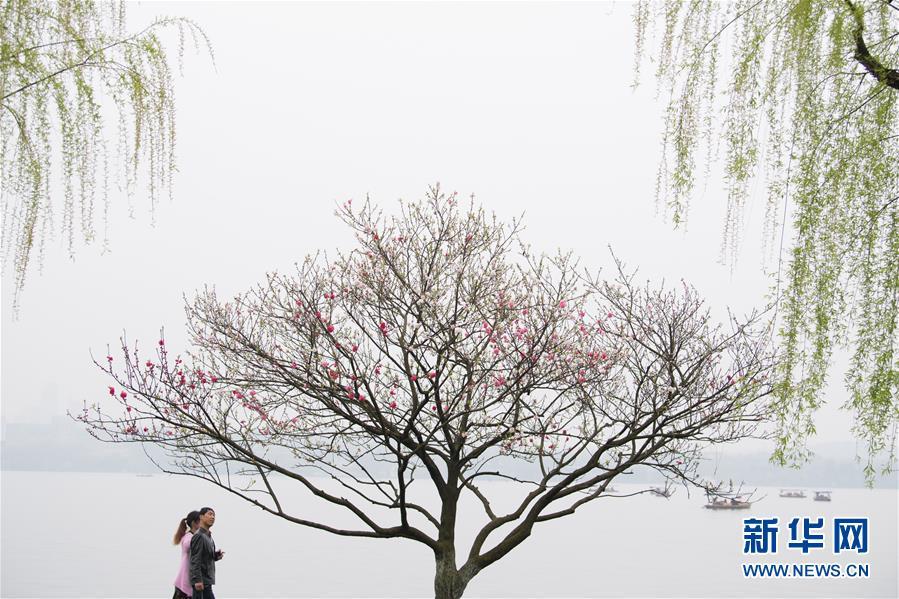 3月26日,游客在杭州西湖白堤上游覽。 在即將過去的2018年,各地?cái)z影師用鏡頭記錄下四季中國。大江南北,一幅幅色彩斑斕的美麗畫卷徐徐展開。 新華社記者 翁忻旸 攝