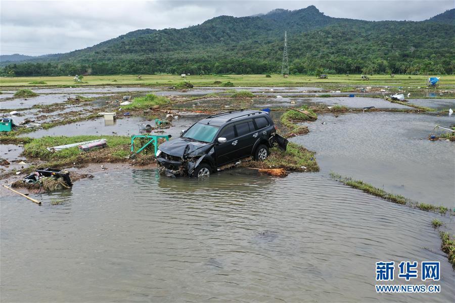 這是12月24日拍攝的印尼萬丹省一處被海嘯損毀的農田。 印度尼西亞抗災署發(fā)言人24日說,印尼西部巽他海峽海嘯死亡人數(shù)已經上升至373人。 新華社記者 杜宇 攝