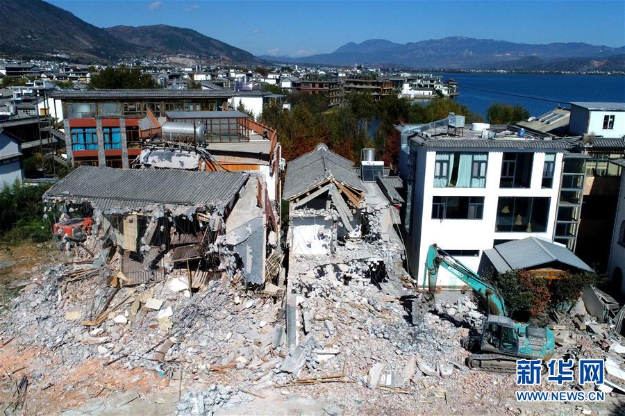 為實(shí)施“三線”劃定,工人在拆除喜洲鎮(zhèn)一處民宿(11月15日攝)。