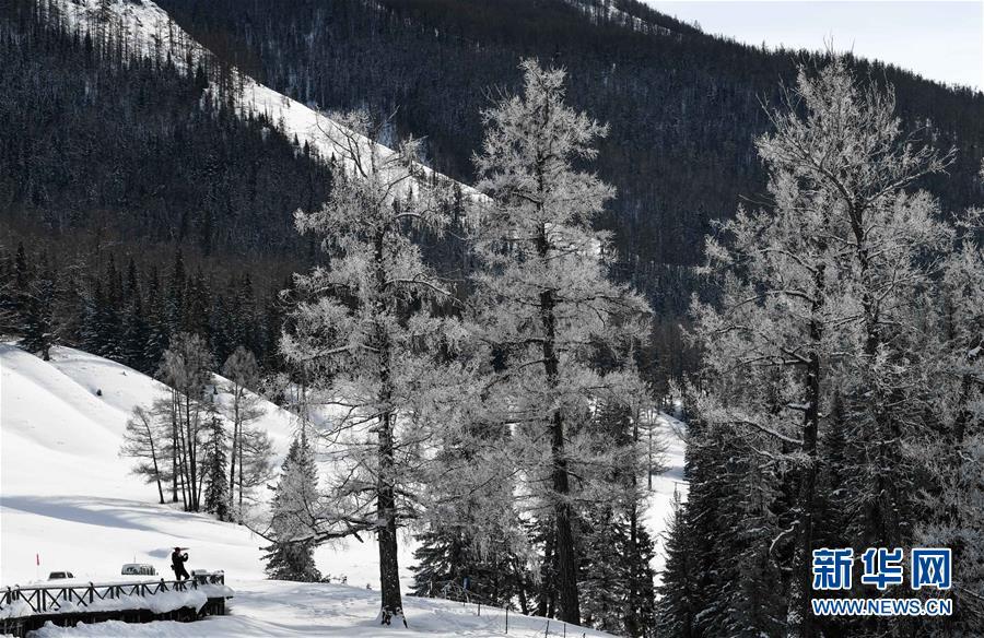 當日,吉林省吉林市出現(xiàn)霧凇景觀,松花江畔的樹木仿佛披上了銀色盛裝。