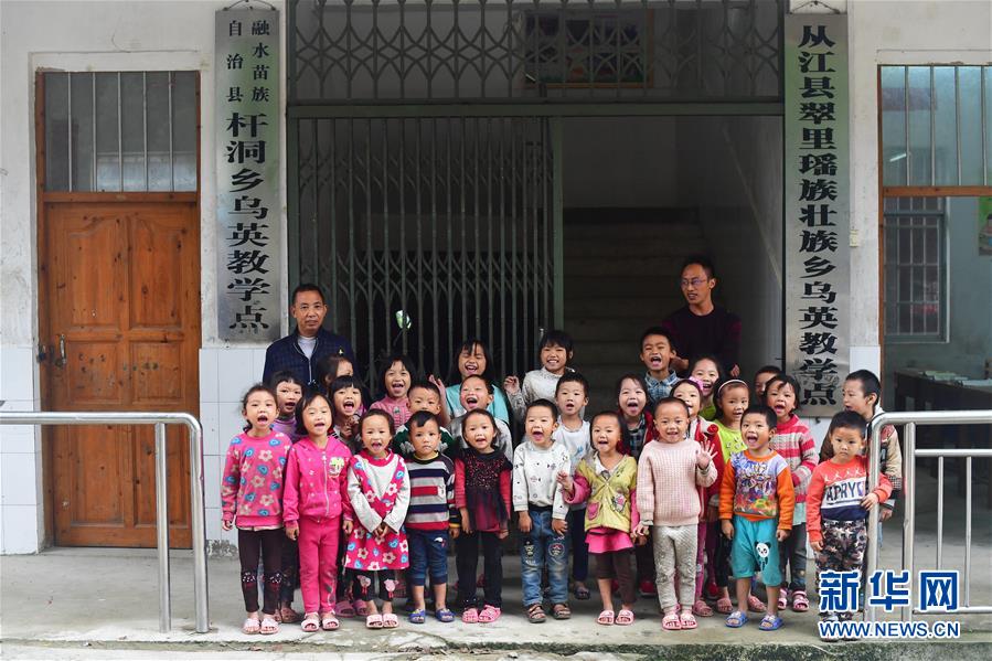 烏英教學(xué)點(diǎn)“一??鐑墒^(qū)”,目前有廣西籍學(xué)生18名,貴州籍學(xué)生9名,廣西貴州籍老師各1名。 烏英苗寨位于黔桂交界的大苗山深處,共有140戶,其中100戶屬廣西柳州市融水苗族自治縣桿洞鄉(xiāng)黨鳩村,40戶屬貴州省從江縣翠里瑤族壯族鄉(xiāng)南岑村。由于地處偏遠(yuǎn),山多地少,經(jīng)濟(jì)發(fā)展緩慢,目前整個(gè)苗寨還有76戶是貧困戶。 面對艱巨的脫貧任務(wù),當(dāng)?shù)攸h委政府在努力改善烏英苗寨公共基礎(chǔ)設(shè)施的同時(shí),因地制宜,帶動(dòng)群眾積極發(fā)展特色產(chǎn)業(yè)。從2017年11月至今的一年多時(shí)間,這里發(fā)生了很大改變:10戶村民新建了木樓,120多戶完成“三改”(改廁改廚改圈),1名貧困考生考上大學(xué),1戶購買新汽車,4對新人舉行了婚禮,寬帶網(wǎng)絡(luò)開始進(jìn)入貧困戶家庭,苗寨修建了新的辦公大樓和戲臺,安裝了4盞太陽能路燈,購買了40多個(gè)新蘆笙,水果種植專業(yè)合作社2018年種植的百香果也開始有所收獲,18戶貧困戶進(jìn)入脫貧公示階段…… 烏英苗寨600多名黔桂苗族群眾,正在用勤勞的手,拔窮根摘窮帽,一起創(chuàng)造美好的明天。