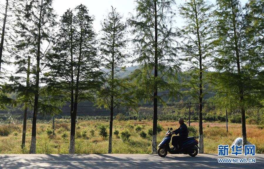 舒港發(fā)騎著電動(dòng)車行進(jìn)在村子里(10月28日攝)。
