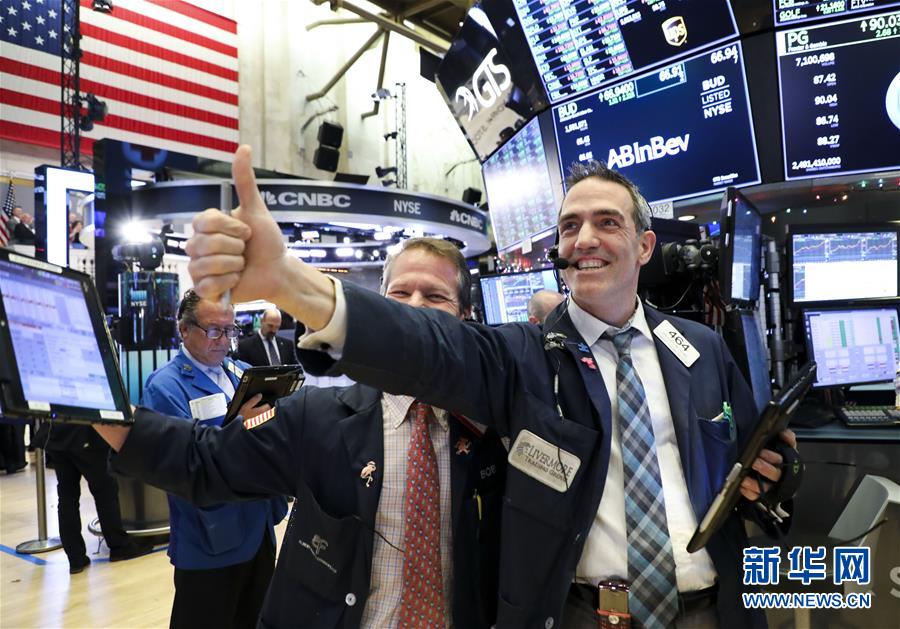 12月26日,交易員在美國紐約證券交易所收盤后慶祝。 紐約股市三大股指26日上漲。截至當天收盤,道瓊斯工業(yè)平均指數(shù)比前一交易日上漲1086.25點,收于22878.45點,漲幅4.98%。標準普爾500種股票指數(shù)上漲116.60點,收于2467.70點,漲幅4.96%。納斯達克綜合指數(shù)上漲361.44點,收于6554.35點,漲幅5.84%。 新華社記者 王迎 攝