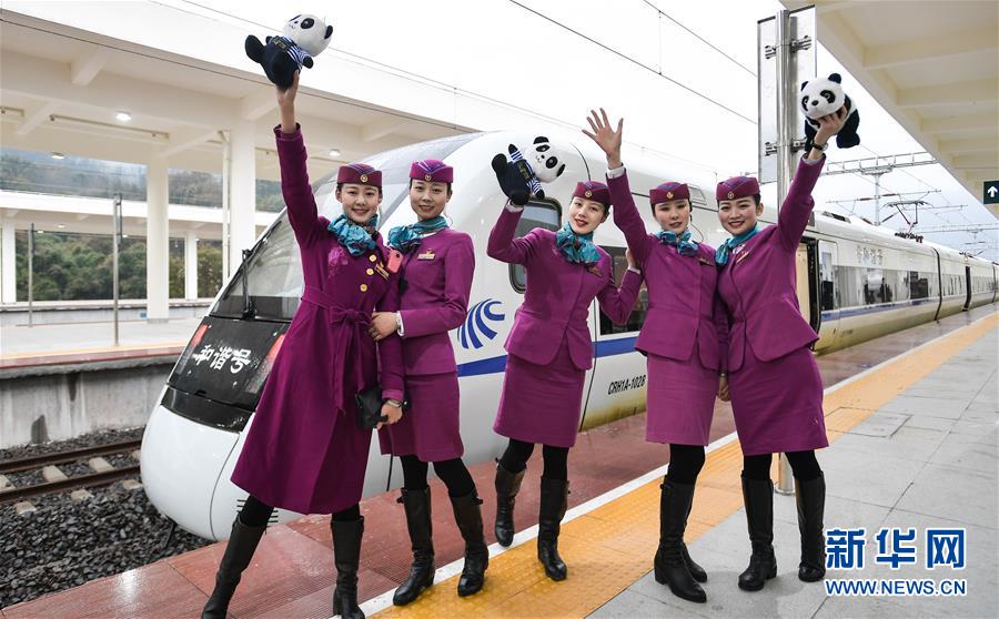 12月28日,在雅安站,乘務(wù)員在列車前合影。