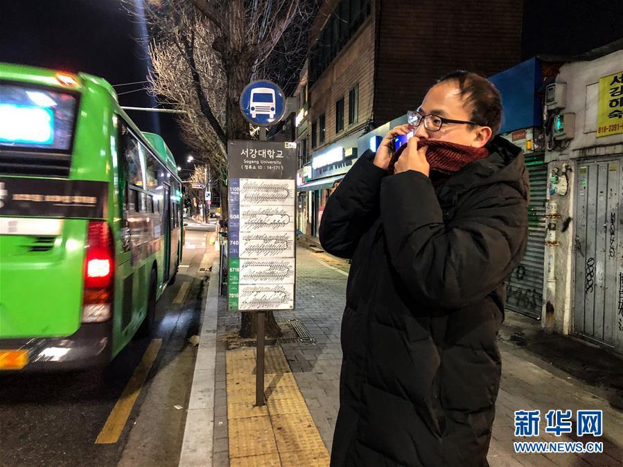 12月28日,一名行人在韓國(guó)首爾西江大學(xué)附近的一個(gè)公交站打電話。據(jù)韓國(guó)氣象部門(mén)28日消息,全國(guó)各地當(dāng)天迎來(lái)強(qiáng)寒潮,首爾地區(qū)體感溫度達(dá)零下19.3攝氏度,中部地區(qū)和南部地區(qū)已發(fā)布低溫預(yù)警。新華社記者 王婧嬙 攝