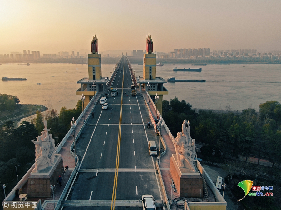 2018年12月29日,江蘇省南京市,中午12點(diǎn),維修改造后的南京長江大橋全線恢復(fù)通車。2018年12月29日還是南京長江大橋公路橋建成通車50周年紀(jì)念日。
