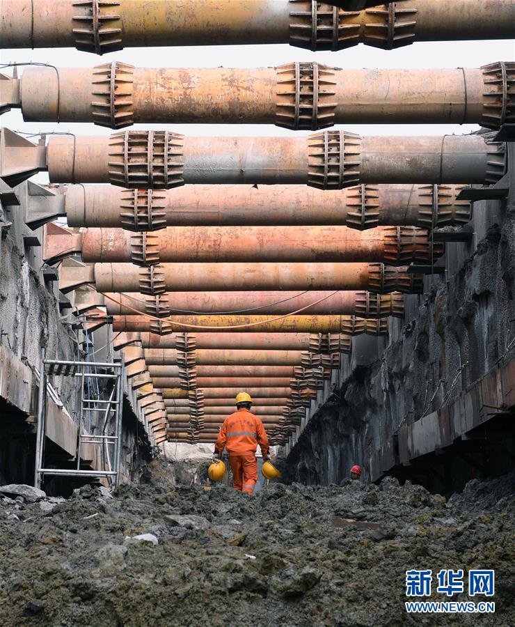 12月30日,南昌地鐵四號線西禮區(qū)間項目工地上,中鐵上海工程局集團(tuán)有限公司的職工在進(jìn)行施工。新華社記者宋振平攝