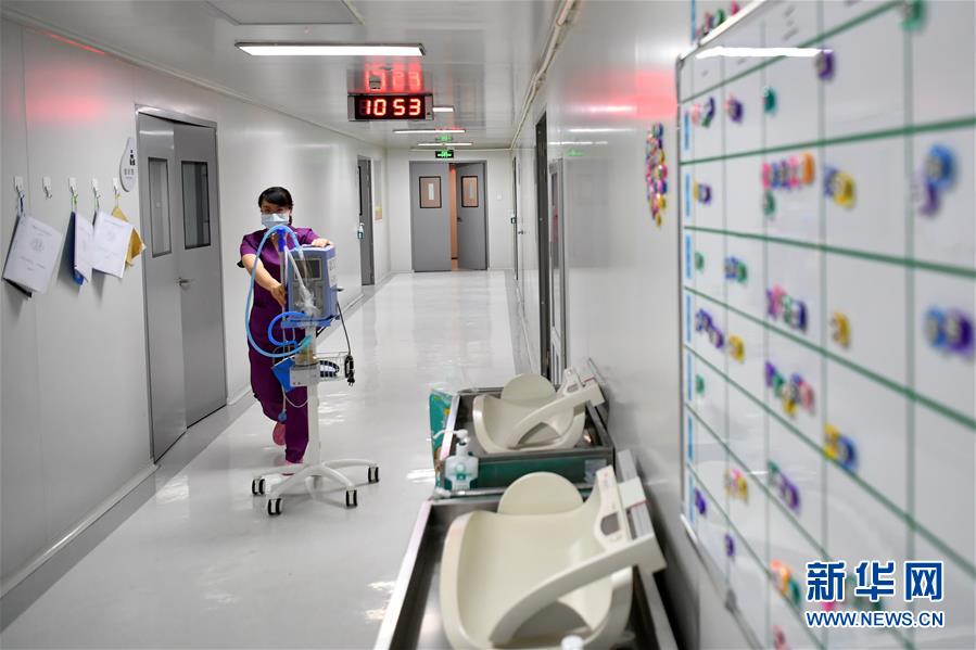 12月30日,山西省兒童醫(yī)院新生兒重癥監(jiān)護(hù)室醫(yī)生王榮華在搬運無創(chuàng)呼吸機(jī)。新華社記者曹陽攝