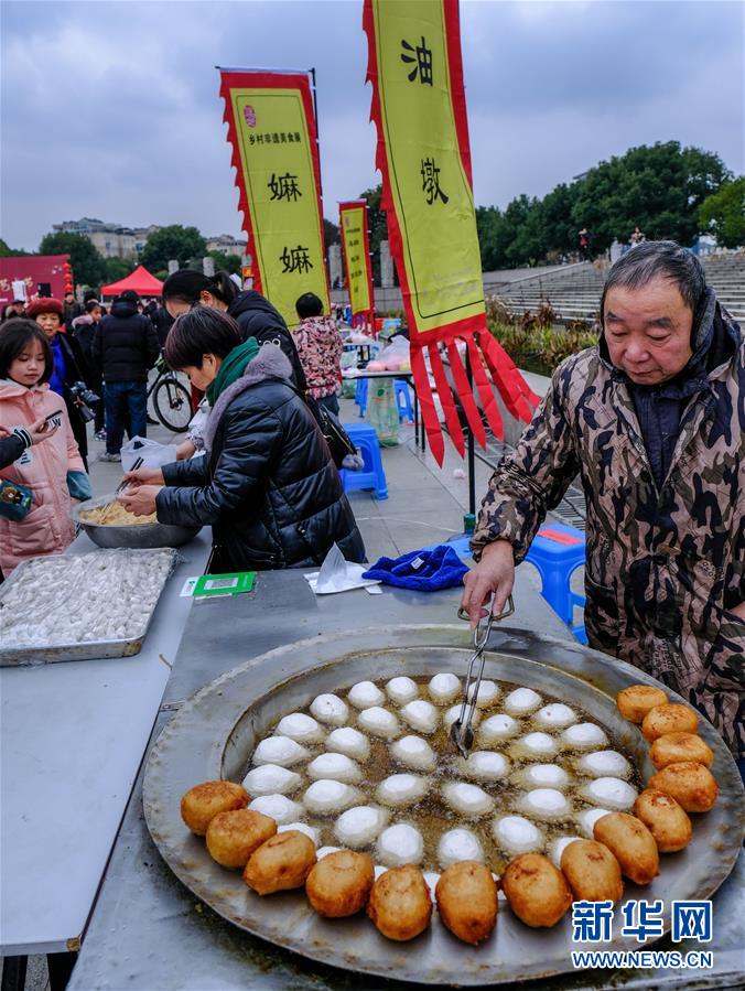 2019年1月1日,居民在展演活動(dòng)上制作傳統(tǒng)美食“油墩”。2019年元旦,浙江省桐鄉(xiāng)市濮院鎮(zhèn)舉辦新年“非遺文化藝術(shù)節(jié)”活動(dòng),濮院鎮(zhèn)下屬多個(gè)鄉(xiāng)村的傳統(tǒng)美食制作、手工藝品、非遺文化表演等鄉(xiāng)村特色非遺項(xiàng)目在濮院鎮(zhèn)中心廣場進(jìn)行集中展示展演。新華社記者 徐昱 攝