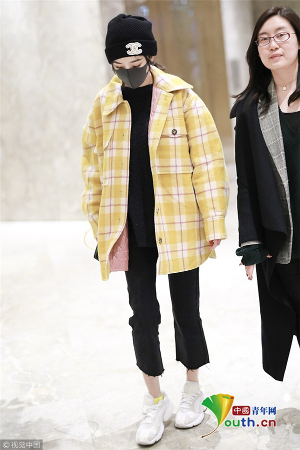 2018年1月6日,上海,楊冪現(xiàn)身某酒店。她戴著帽子口罩,身穿黑色套裝,而外面搭配的奶黃格子外套卻瞬間減齡,明亮又惹眼,無懼寒冬露著纖細(xì)腳踝,依舊是那個很會穿搭的大冪冪。