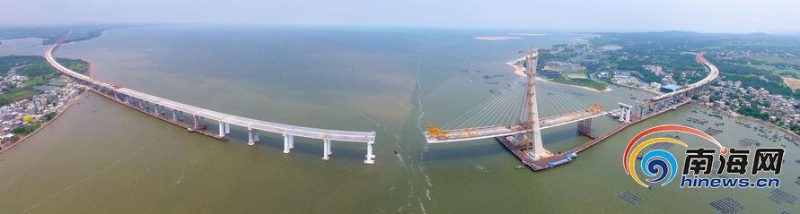據(jù)悉,海南鋪前大橋目前主橋和引橋樁基、承臺(tái)、墩身的施工已全部完成,主橋鋼箱梁吊裝完成71%,引橋混凝土箱梁施工完成92%,力爭(zhēng)年底通車。