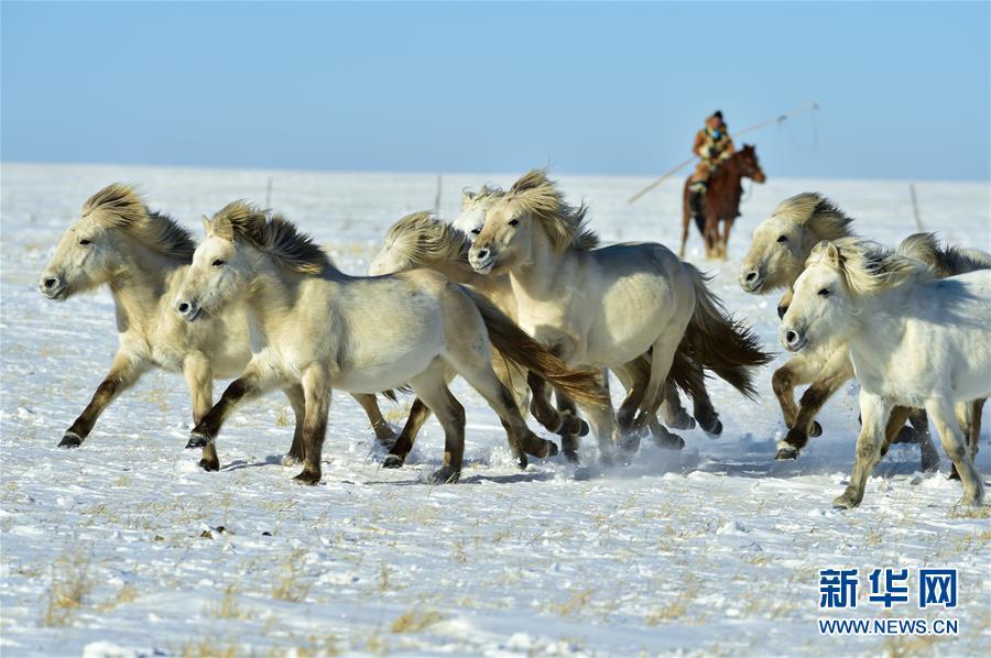 1月8日,牧民進行套馬表演。 時下正值草原冬季旅游旺季,內(nèi)蒙古自治區(qū)西烏珠穆沁旗的牧民們在雪原上一展身手,為游客展現(xiàn)獨特的民族風情。 新華社記者 鄒予 攝