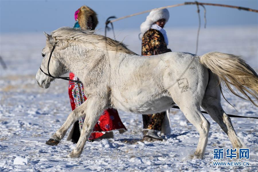 1月8日,牧民進(jìn)行套馬表演。 時(shí)下正值草原冬季旅游旺季,內(nèi)蒙古自治區(qū)西烏珠穆沁旗的牧民們?cè)谘┰弦徽股硎郑瑸橛慰驼宫F(xiàn)獨(dú)特的民族風(fēng)情。 新華社記者 劉磊 攝