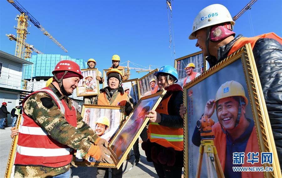 1月9日,中建一局北京城市副中心周轉(zhuǎn)房項(xiàng)目工地的工人在觀看自己的照片。 當(dāng)日,由北京市總工會(huì)主辦的工會(huì)“兩節(jié)”送溫暖活動(dòng)之一的“把微笑帶回家,為最美勞動(dòng)者點(diǎn)贊”大型公益活動(dòng),在中建一局北京城市副中心職工周轉(zhuǎn)房項(xiàng)目工地舉行。眾多勞動(dòng)者獲贈(zèng)“微笑”肖像照和保溫壺、毛巾等新春“大福包”。 新華社記者 李欣 攝
