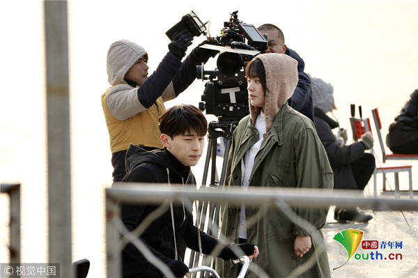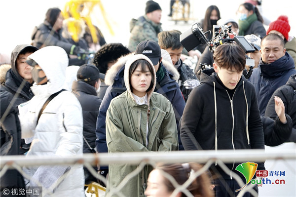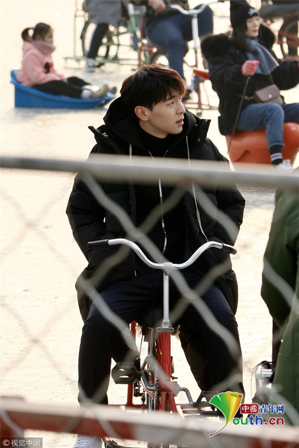 2019年1月9日,北京,鄧倫、馬思純現(xiàn)身后海滑冰場(chǎng),騎冰車拍攝新劇《加油你是最棒的》。寒冷的北京,二人身著單薄的劇中服裝現(xiàn)身拍攝片場(chǎng),不顧嚴(yán)寒超敬業(yè)。