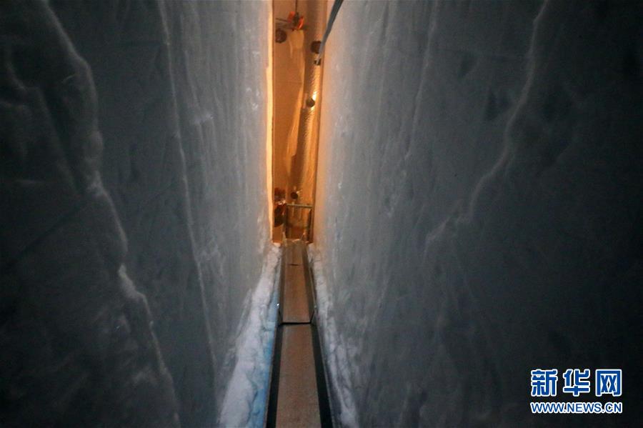 這是深冰芯房?jī)?nèi)10米深的鉆探槽(1月12日攝)。 新華社記者 劉詩(shī)平 攝
