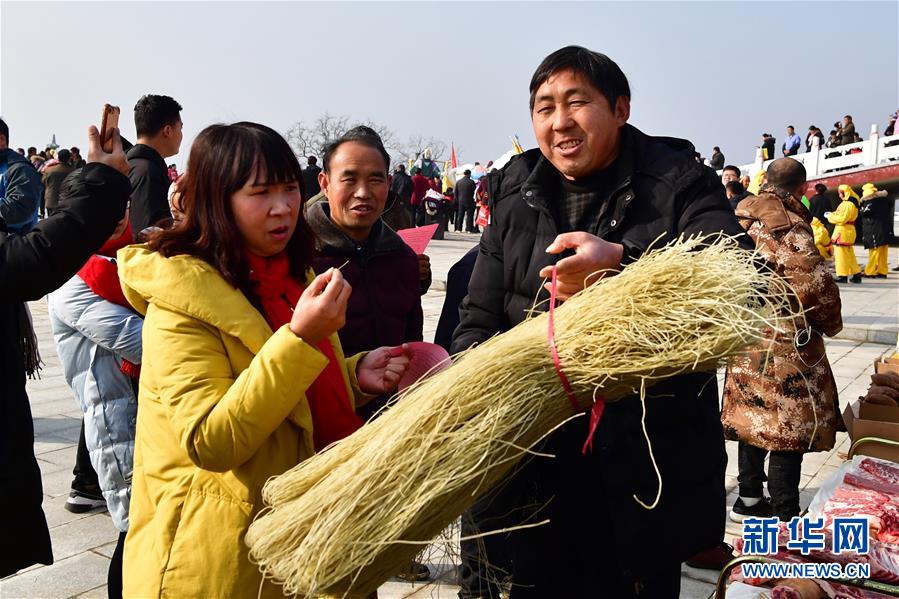 當(dāng)日,河南省魯山縣觀音寺鄉(xiāng)西桐樹莊村土特產(chǎn)年貨展銷活動(dòng)在河南魯山阿婆寨風(fēng)景區(qū)門口舉行。近年來,依托鄉(xiāng)村旅游的不斷發(fā)展,不少貧困山村特產(chǎn)走出大山。