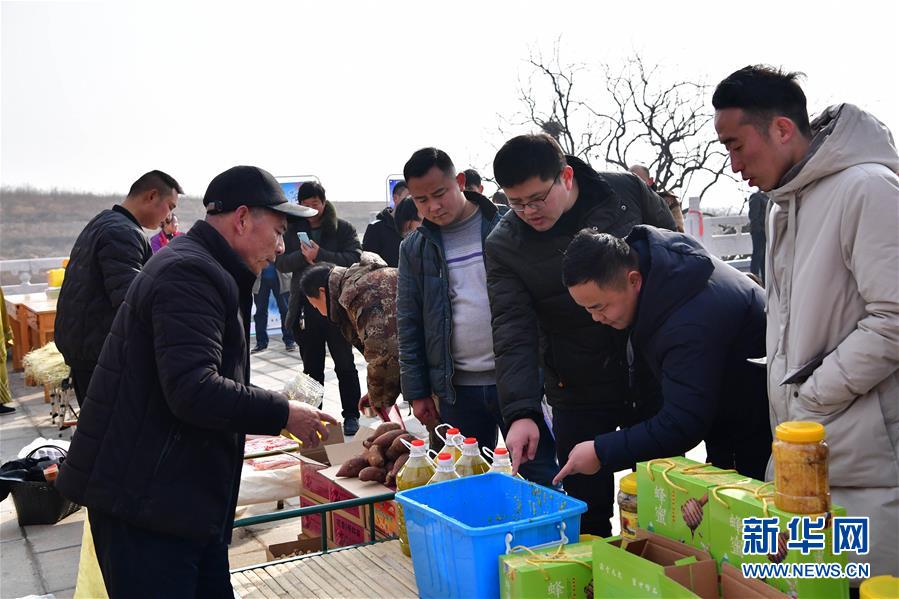 1月13日,游客和附近村民在展銷活動(dòng)上選購(gòu)?fù)撂禺a(chǎn)。 新華社記者 馮大鵬 攝