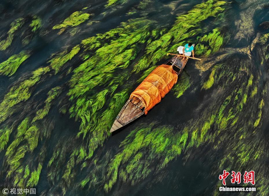 孟加拉國河流清澈見底 漁船暢行水藻間構(gòu)成美麗圖畫