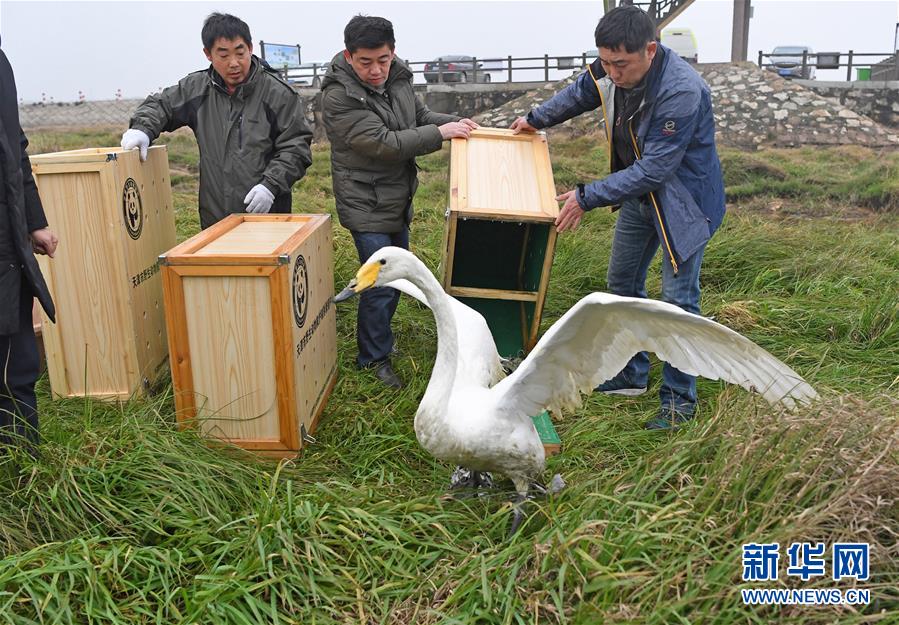 當(dāng)日,江西省野生動植物救護(hù)繁育中心、天津市野生動物救護(hù)馴養(yǎng)繁殖中心在江西鄱陽湖國家級自然保護(hù)區(qū)將16只被救治的珍稀候鳥成功放飛。其中1只東方白鸛為國家一級保護(hù)動物,2只大天鵝、3只鴛鴦為國家二級保護(hù)動物。