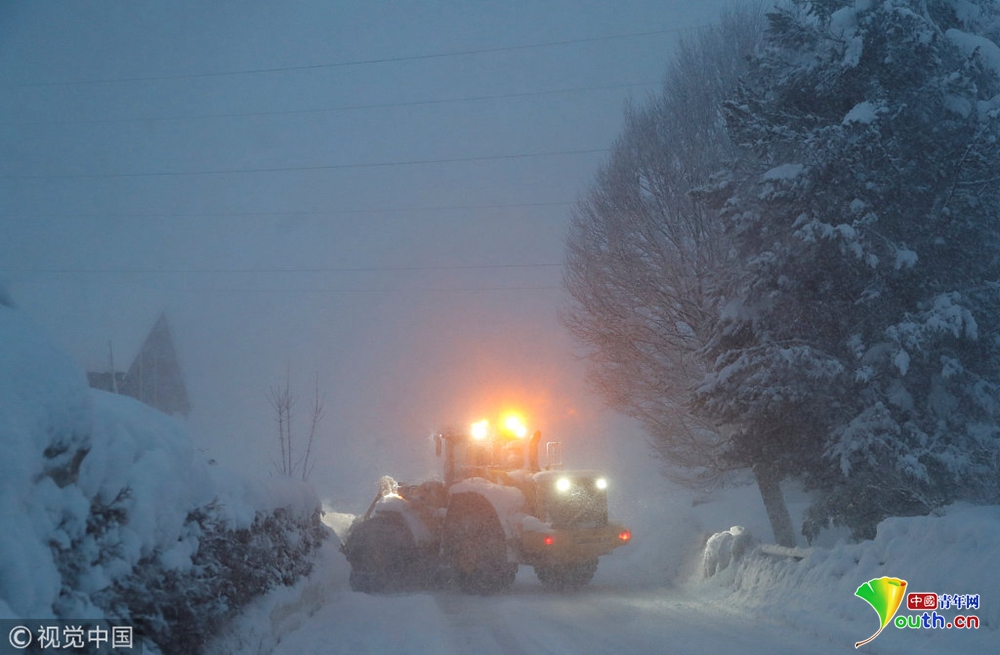 奧地利暴風雪持續(xù) 公交車站被積雪掩埋