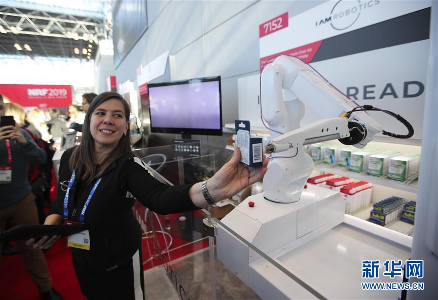 1月14日,在美國紐約舉行的全國零售商聯(lián)合會年度大會的“創(chuàng)新實驗室”展廳,自動取貨機器人根據(jù)顧客的要求抓取商品。 美國全國零售商聯(lián)合會年度大會于1月13日至15日在紐約舉行,許多來自世界各地的展商帶來使用新技術(shù)開發(fā)出的軟硬件產(chǎn)品,向觀眾展示未來零售業(yè)的新愿景。 新華社記者 王迎 攝