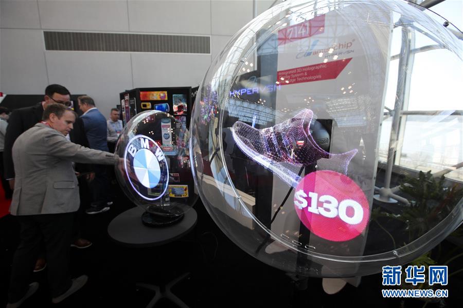 1月14日,在美國紐約舉行的全國零售商聯(lián)合會年度大會的“創(chuàng)新實驗室”展廳,參觀者觀看使用3D全息投影技術(shù)的商品展示設(shè)備。 美國全國零售商聯(lián)合會年度大會于1月13日至15日在紐約舉行,許多來自世界各地的展商帶來使用新技術(shù)開發(fā)出的軟硬件產(chǎn)品,向觀眾展示未來零售業(yè)的新愿景。 新華社記者 王迎 攝